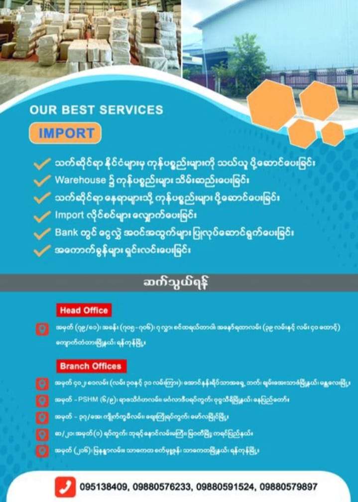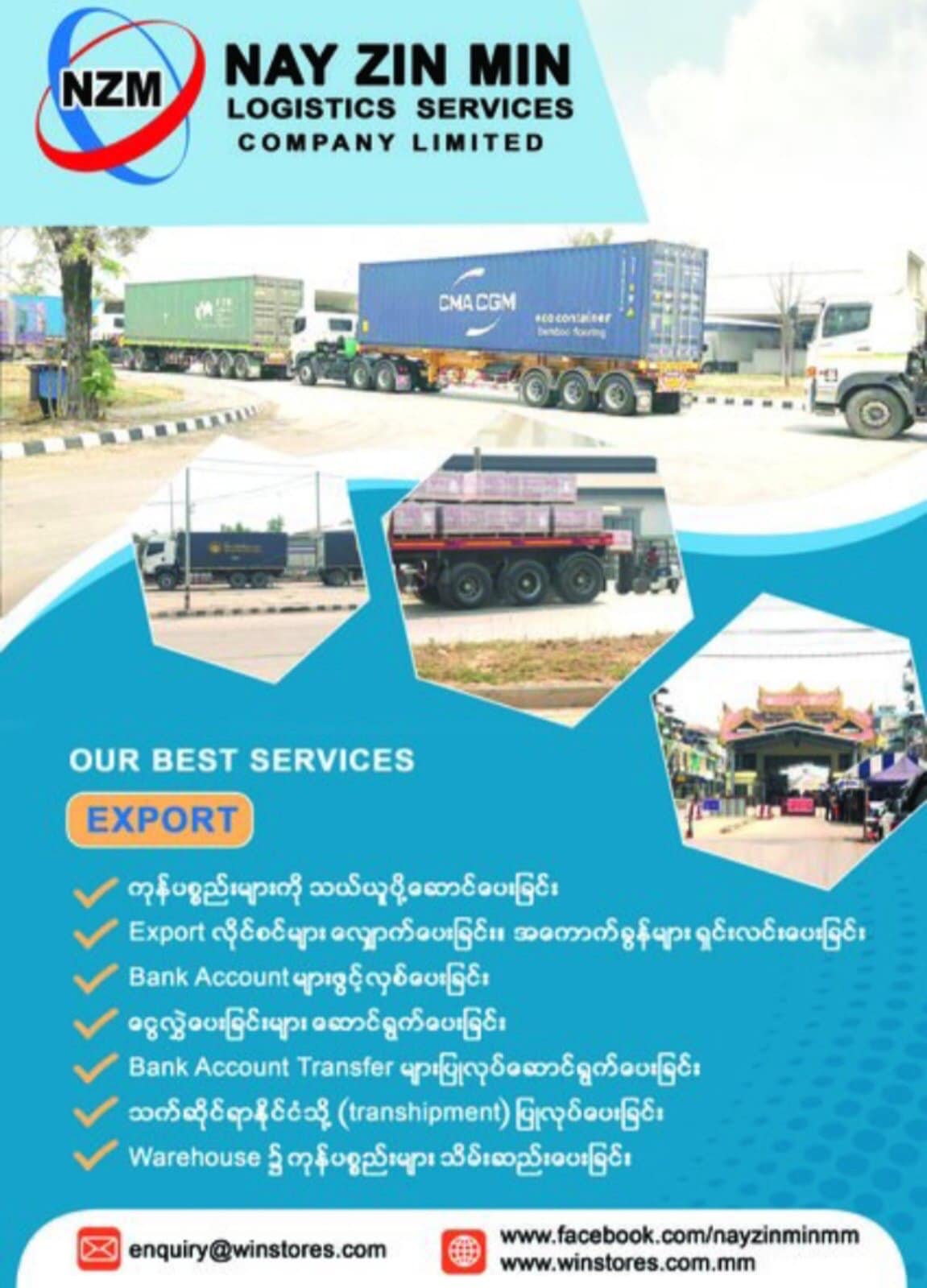 Nay Zin Min Logistics ဝန်ဆောင်မှုသည် ဖောက်သည်ဟောင်းများနှင့် အသစ်များကို နွေးထွေးစွာ ကြိုဆိုပါသည်။
